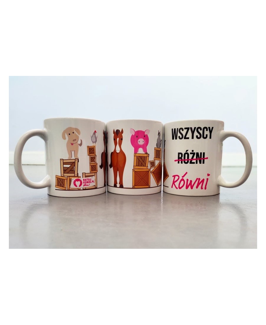 Kubek Viva! WSZYSCY RÓWNI (300 ml). Grafika NA CAŁYM KUBKU :)