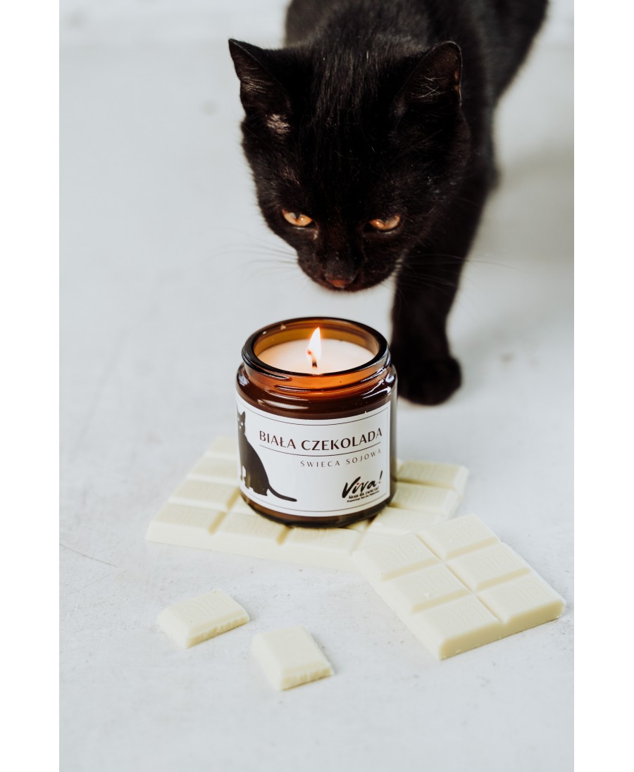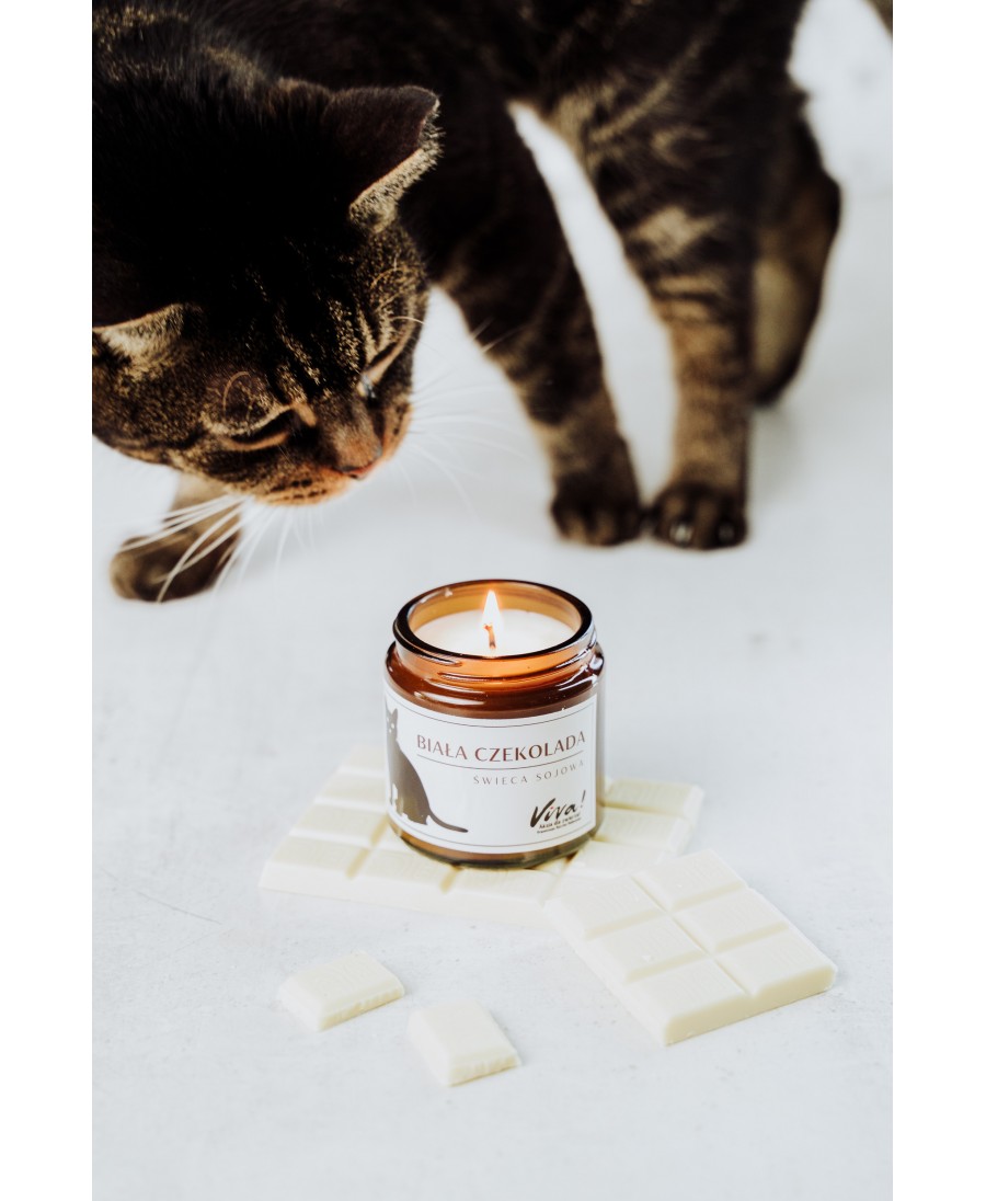 Zanurz się w słodki, kremowy zapach białej czekolady z naszą wyjątkową świecą sojową, stworzoną specjalnie dla Fundacji Viva! Świeca jest wykonana ręcznie z naturalnego wosku sojowego i wegańskich olejków zapachowych, co czyni ją produktem nietoksycznym, ekologicznym i cruelty-free. Przyjazna dla środowiska i w pełni wegańska, idealnie nadaje się do wnętrz, oferując aromatyczną harmonię bez obaw o szkodliwe substancje.