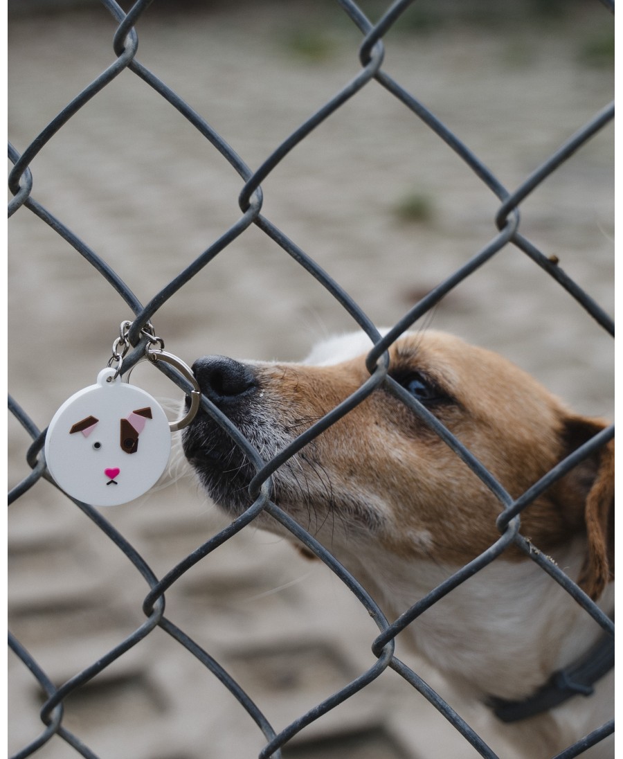 Uroczy brelok w kształcie psiej mordki – to oficjalne logo schroniska Fundacji Viva! w Korabiewicach. Idealny do kluczy, plecaka czy torby.