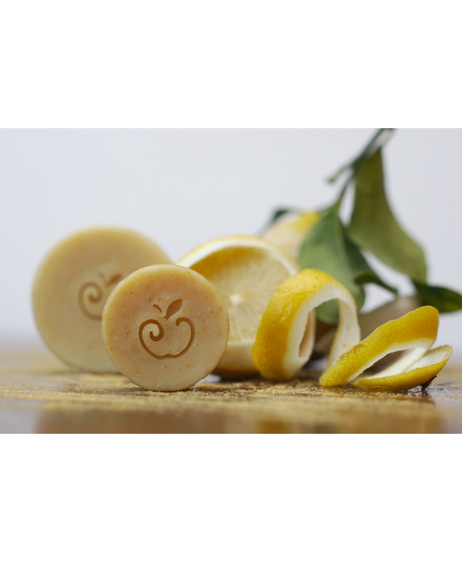 Mydło na wskroś cytrynowe o pięknym naturalnym żółtym kolorze, zawiera skórkę cytrynową oraz olejek cytrynowy.